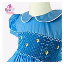 Maya Blue Hand Smocked Hand Embroidered Baby Girl Dress with White Floral Details for Weddings, Birthdays & Elegant Celebrations