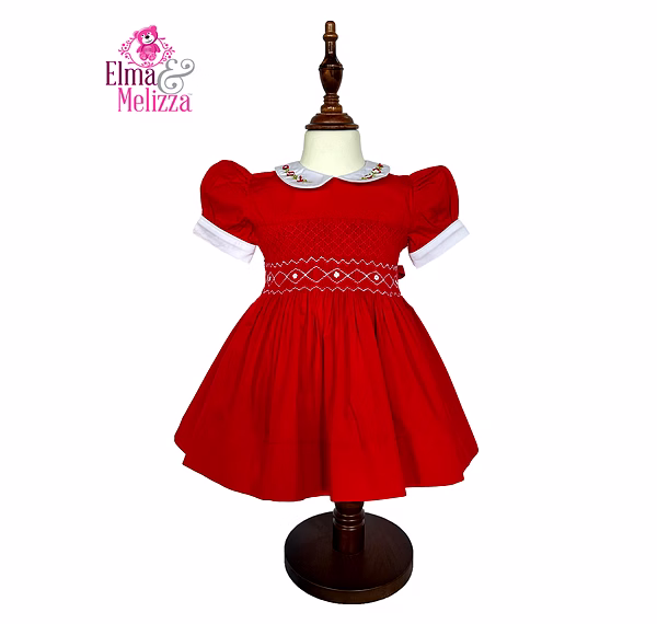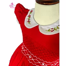 Royale Red Hand Smocked Embroidered Baby Girl Dress with White Rose Accents – Perfect for Weddings, Birthdays & Festive Celebrations