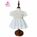 Dress your little one in the soft sophistication of this hand-smocked baby girl dress in creamy white cotton, where elegance meets comfort. Made from breathable, high-quality cotton, the smooth, plain fabric serves as the perfect canvas for fine craftsmanship and understated charm. Ideal for delicate skin and long wear, this graceful piece creates a radiant look without compromising on all-day comfort.