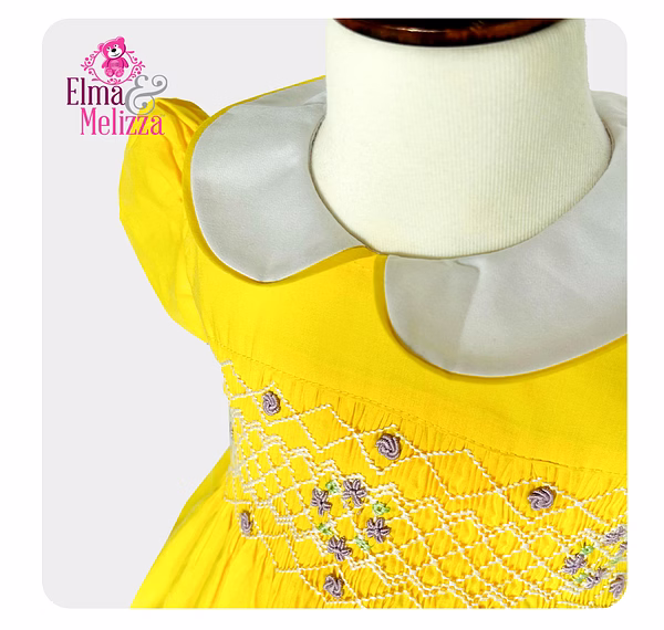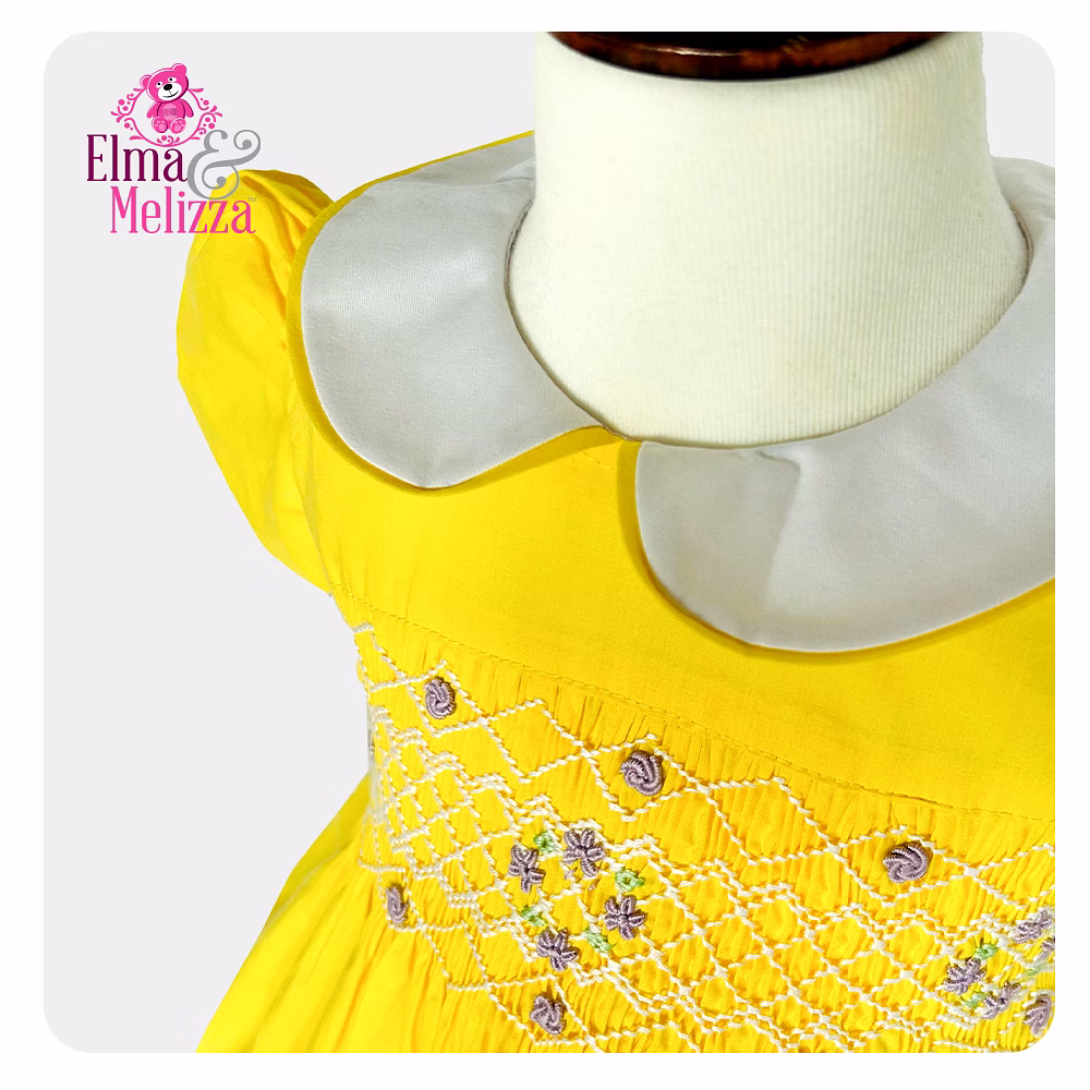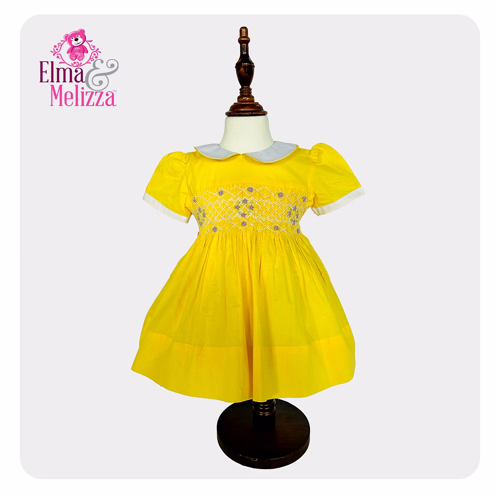 The Canary Yellow Hand Smocked Embroidered Baby Girl Dress captures the warmth of sunshine and the charm of delicate craftsmanship. Made from premium breathable cotton, this dress ensures your little one stays cool and comfortable through every celebration. With its vibrant canary yellow base and intricate hand-smocked detailing, it's a timeless piece perfect for birthdays, weddings, family gatherings, and festive photo shoots. Designed to make every moment picture-perfect, it’s a joyful addition to your baby girl’s wardrobe.