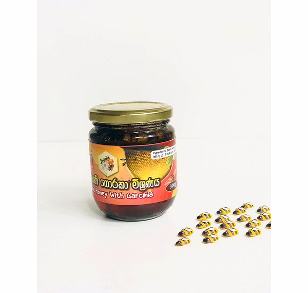 Garcinia (also known as Goru Kola or Garcinia Cambogia) is rich in hydroxycitric acid (HCA), known to help reduce fat absorption, curb appetite, and naturally support metabolism. Combined with antioxidant-rich bee honey, this blend becomes a natural powerhouse for wellness.