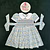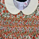 Design Features: Hand-smocked and hand-embroidered. Elegantly designed with a white Peter Pan collar and puffed sleeves. Charm, simple red and white embroidery design.