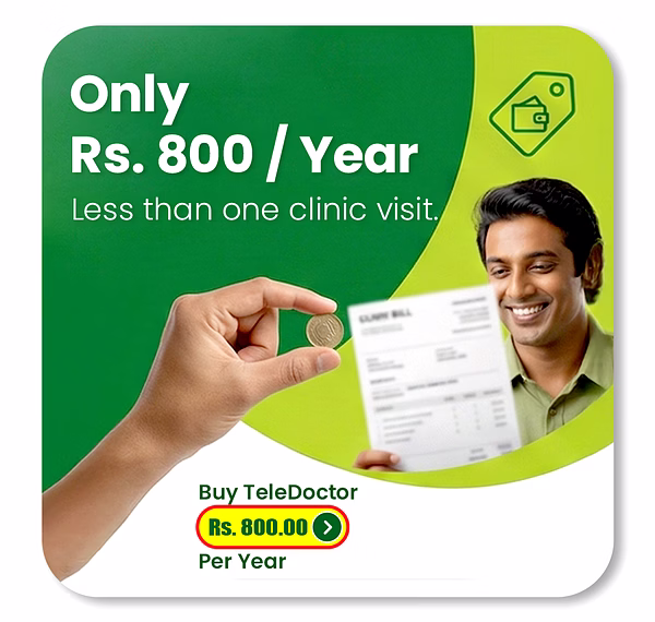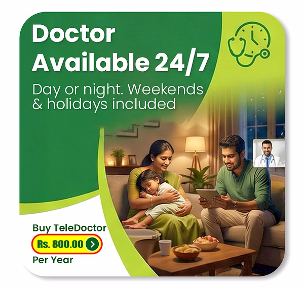 The BIMA Doctor Annual TeleDoctor Pass, powered by PharmacyNearMe.lk, gives you and your loved ones 24/7 access to qualified, SLMC-registered doctors — anytime, anywhere.