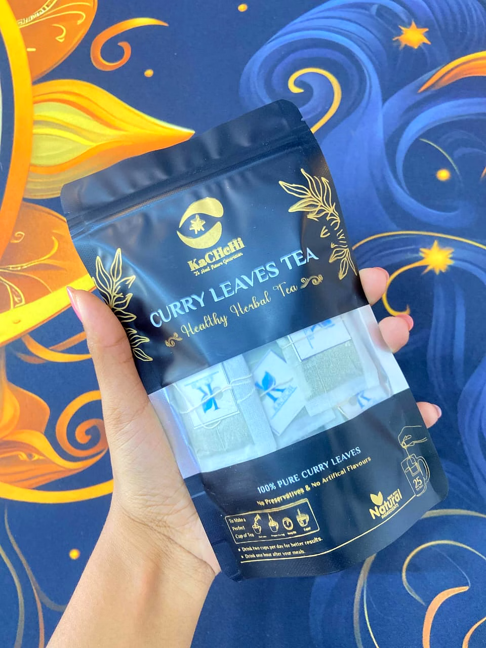 KACHCHI Curry Leaves Tea is a simple and natural way to enjoy the benefits of this traditional herbal ingredient. The tea has a mild herbal flavor and can be enjoyed hot or warm as part of your daily wellness routine.