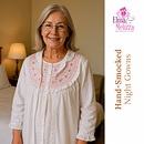 ✨ A flowing cotton nightgown with delicate hand smocking.
