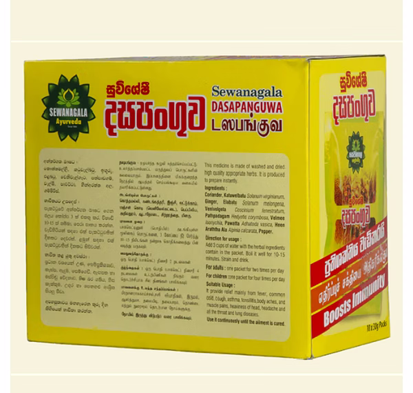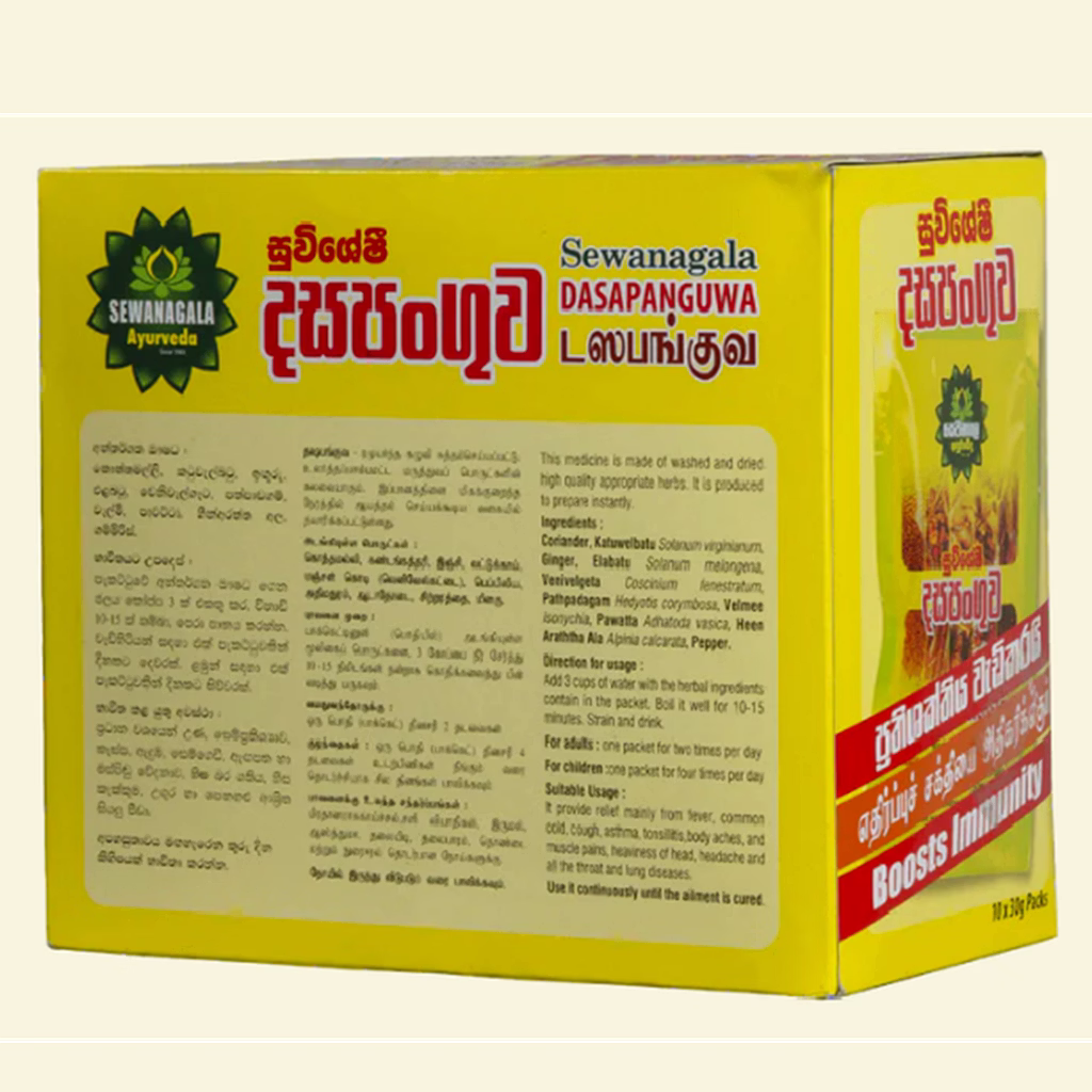 Restore your health with the time-honored efficacy of Sewanagala Dasapanguwa, a classic Sri Lankan herbal decoction. This "Ten-Ingredient" formula is specifically curated to target the root causes of seasonal illnesses, acting as a potent natural remedy to clear the respiratory system and soothe physical discomfort.