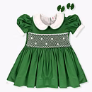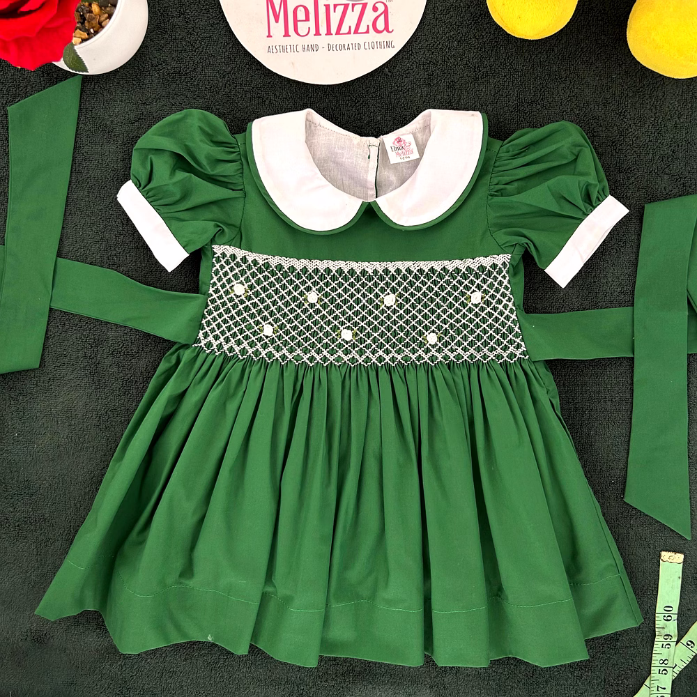 🌿 Timeless Elegance in Forest Green Hand-Smocked Delight