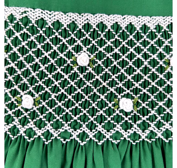 🎀 Hand-Smocked White Rose Embroidery for a Captivating Look