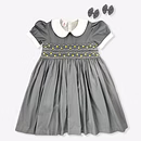 Design Features: Hand-smocked and hand-embroidered.Elegantly designed with a white Peter Pan collar and puffed sleeves. Charm with simple yellow-and-white embroidery design.