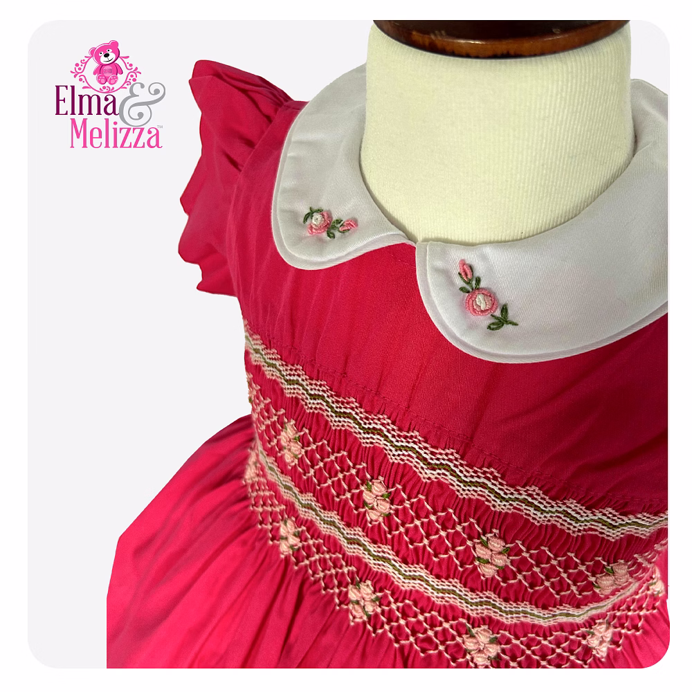 ✨ Handcrafted Smocking and Delicate Rose Embroidery