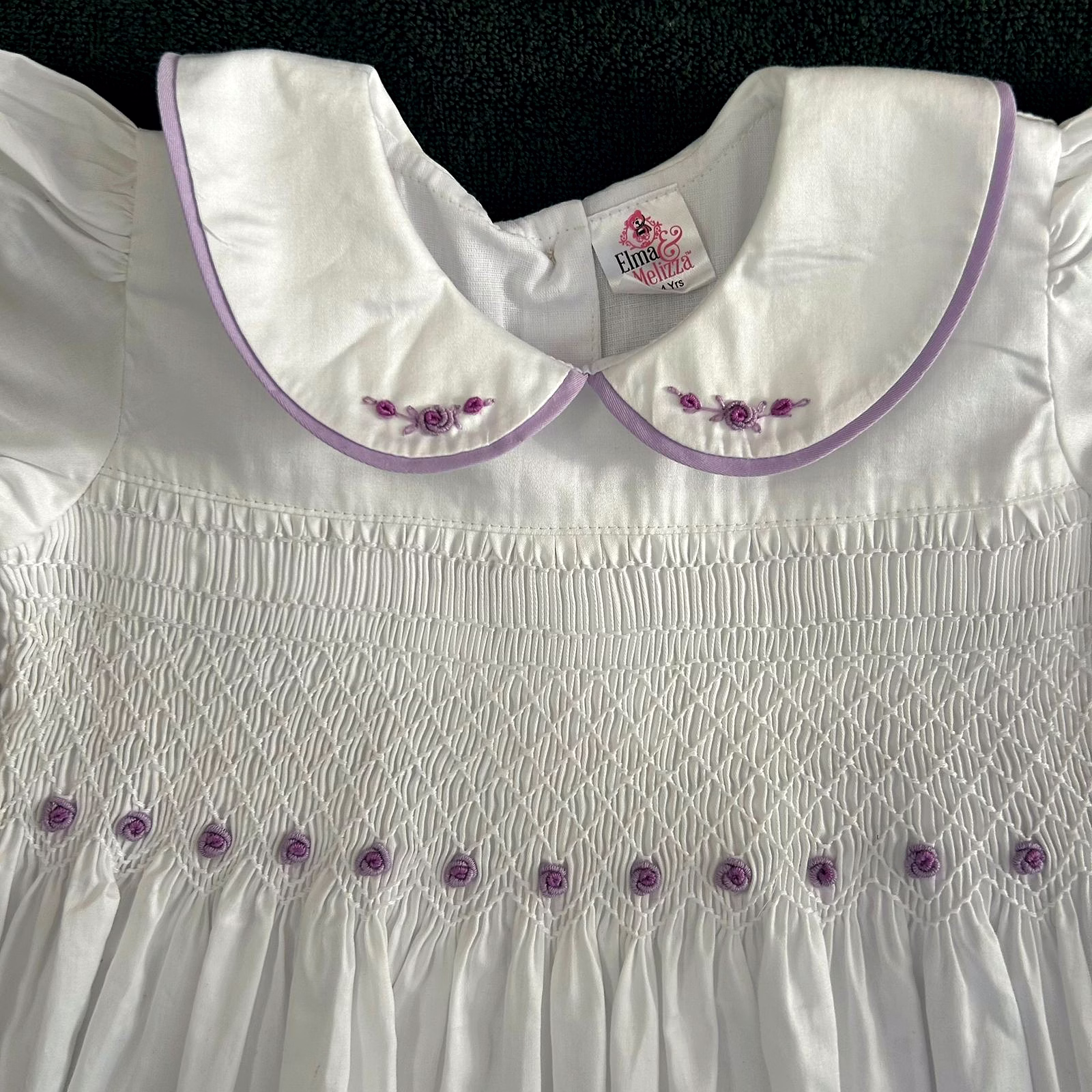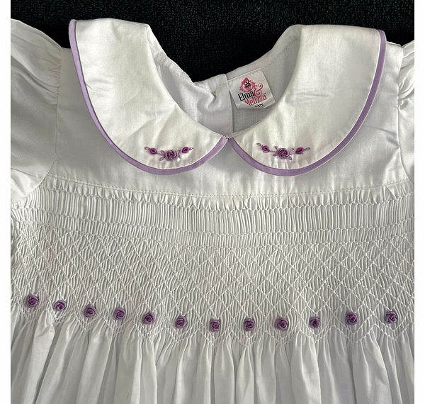 2. White hand smocked baby dress with lilac flowers - 01 Nos