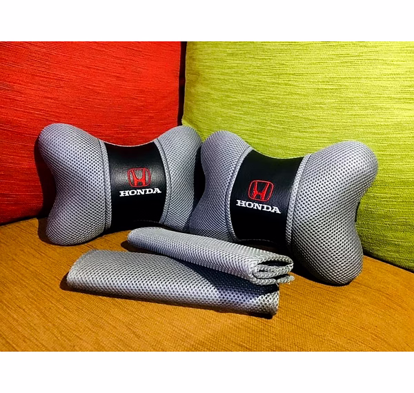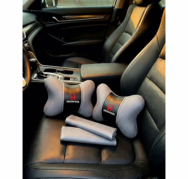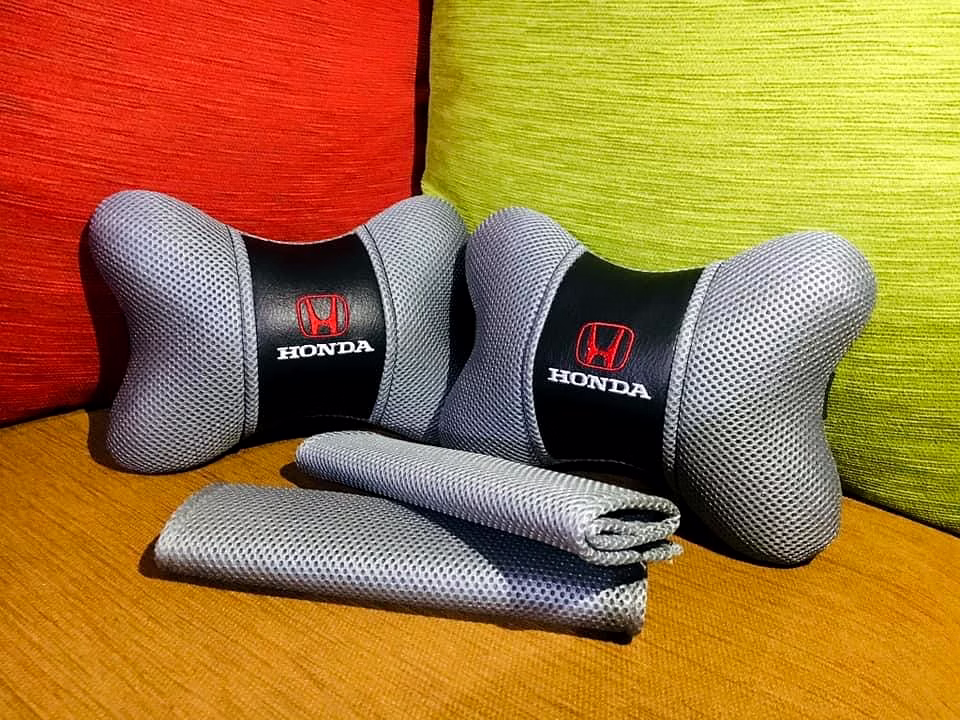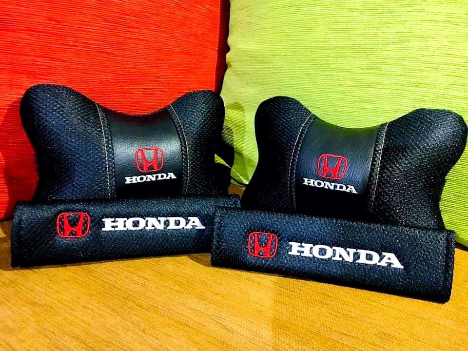 A set of 2 Honda branded Headrest Pillows with Seat Belt Covers