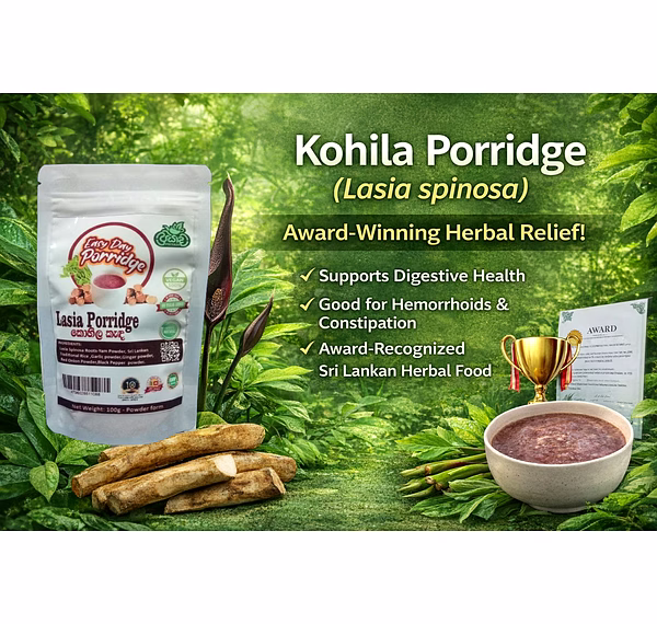 Discover the goodness of Kohila Porridge, a time-tested Sri Lankan herbal food prepared using Lasia spinosa, carefully blended with traditional spices to support daily wellness. This porridge mix is inspired by ancient Ayurvedic food wisdom, now made easy for today’s busy lifestyle.