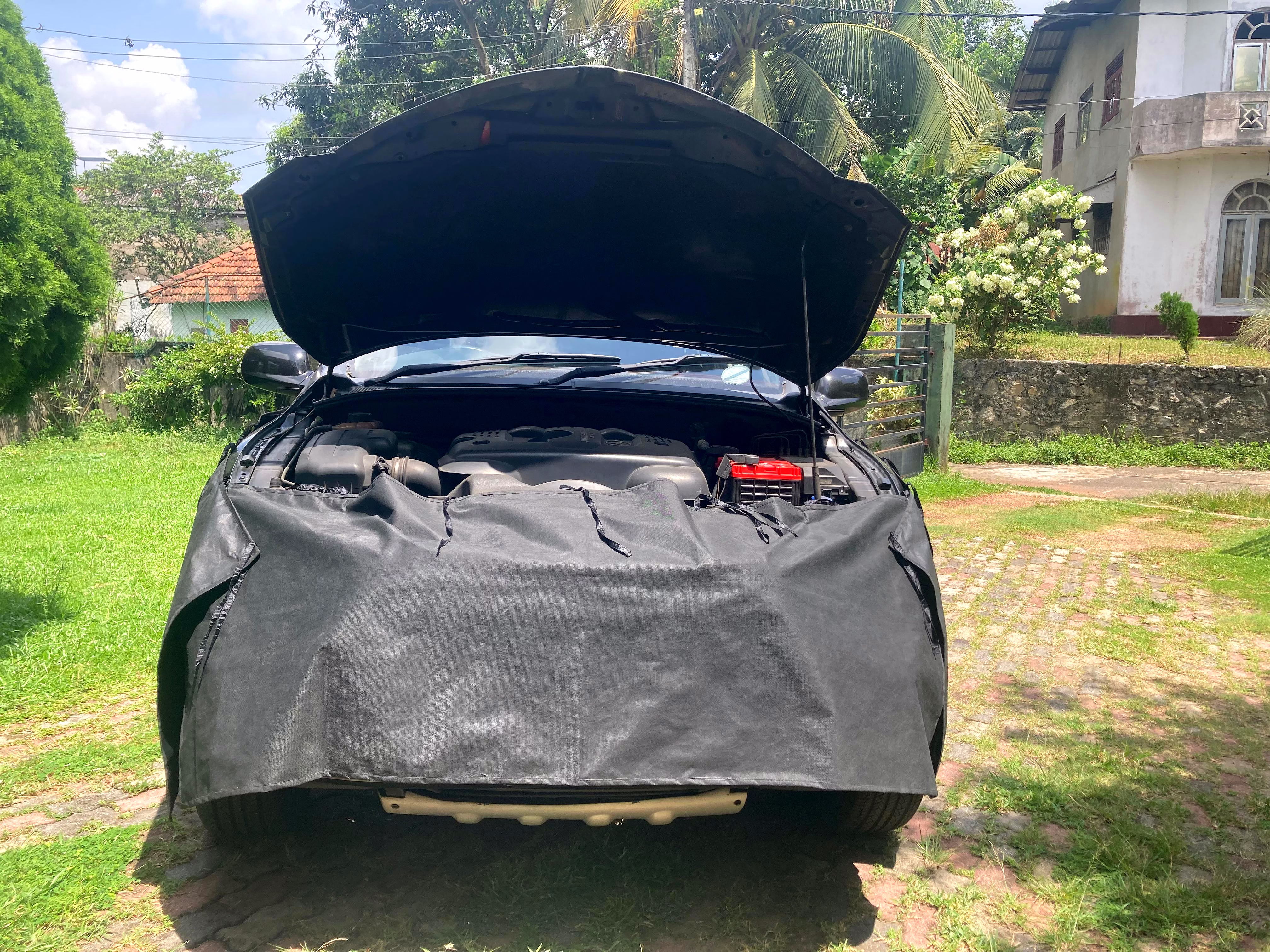 Protect your vehicle's bodywork during maintenance with our high-quality magnetic fender covers. Ideal for garages and service stations, this protective cloth prevents oil, grease, and tool scratches from damaging your car's paint. It is available as a single large piece or in a three-piece set to suit different needs. Made from durable fabric, it includes magnets and loops for secure attachment.