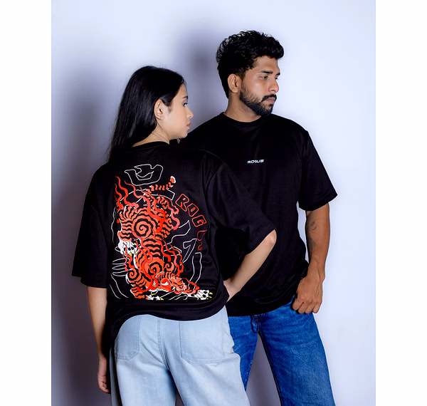ROGUE Legends – Blazing Tiger Oversized Unisex T-Shirt (Black)