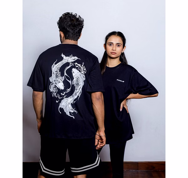 Channel the legend of the koi with this black oversized unisex tee, a symbol of persistence and quiet strength. This shirt is more than just fabric; it's a testament to your relentless spirit. Against a deep black canvas, a striking koi design leaps to life on the back, representing the journey of defying all odds.