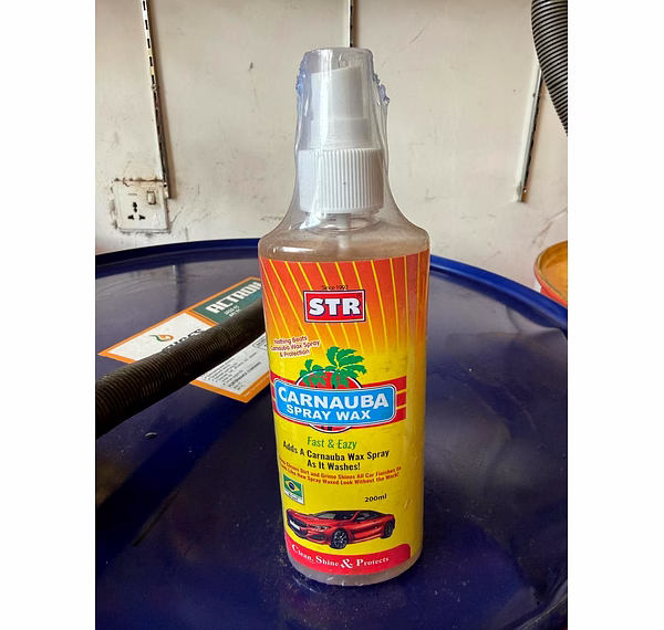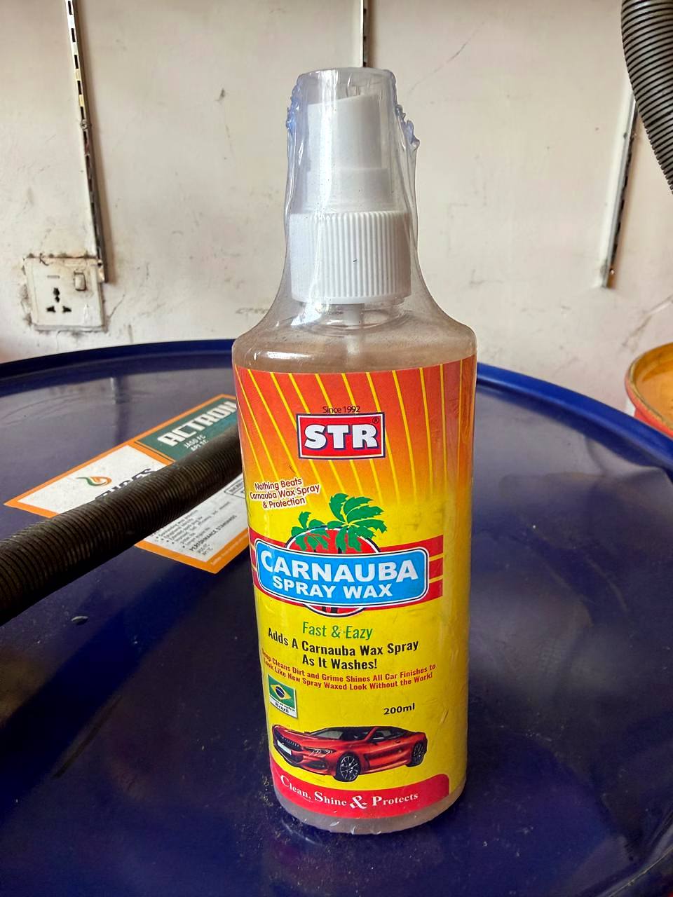 STR Carnauba Spray Wax is a fast and easy-to-use automotive cleaning and detailing product. Designed to be applied as you wash, it cleans dirt and grime while simultaneously adding a Carnauba wax shine to all car finishes. It is marketed as a way to achieve a "spray waxed look" without the intensive labor typically required by traditional waxing methods.