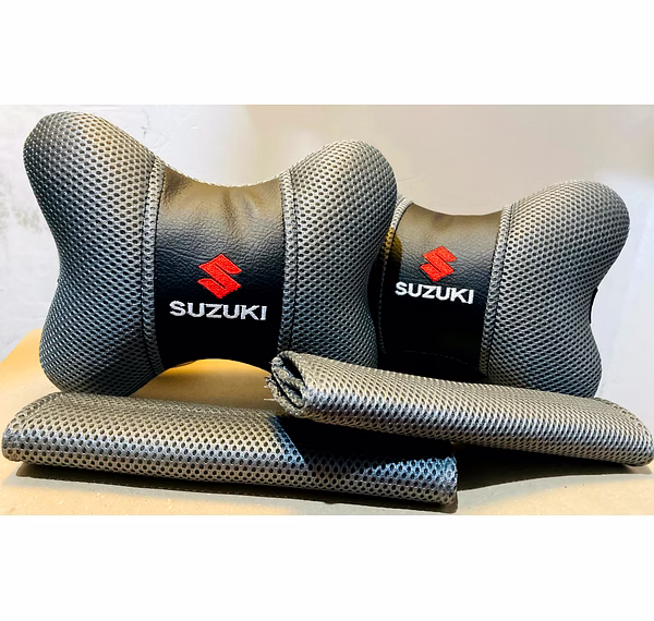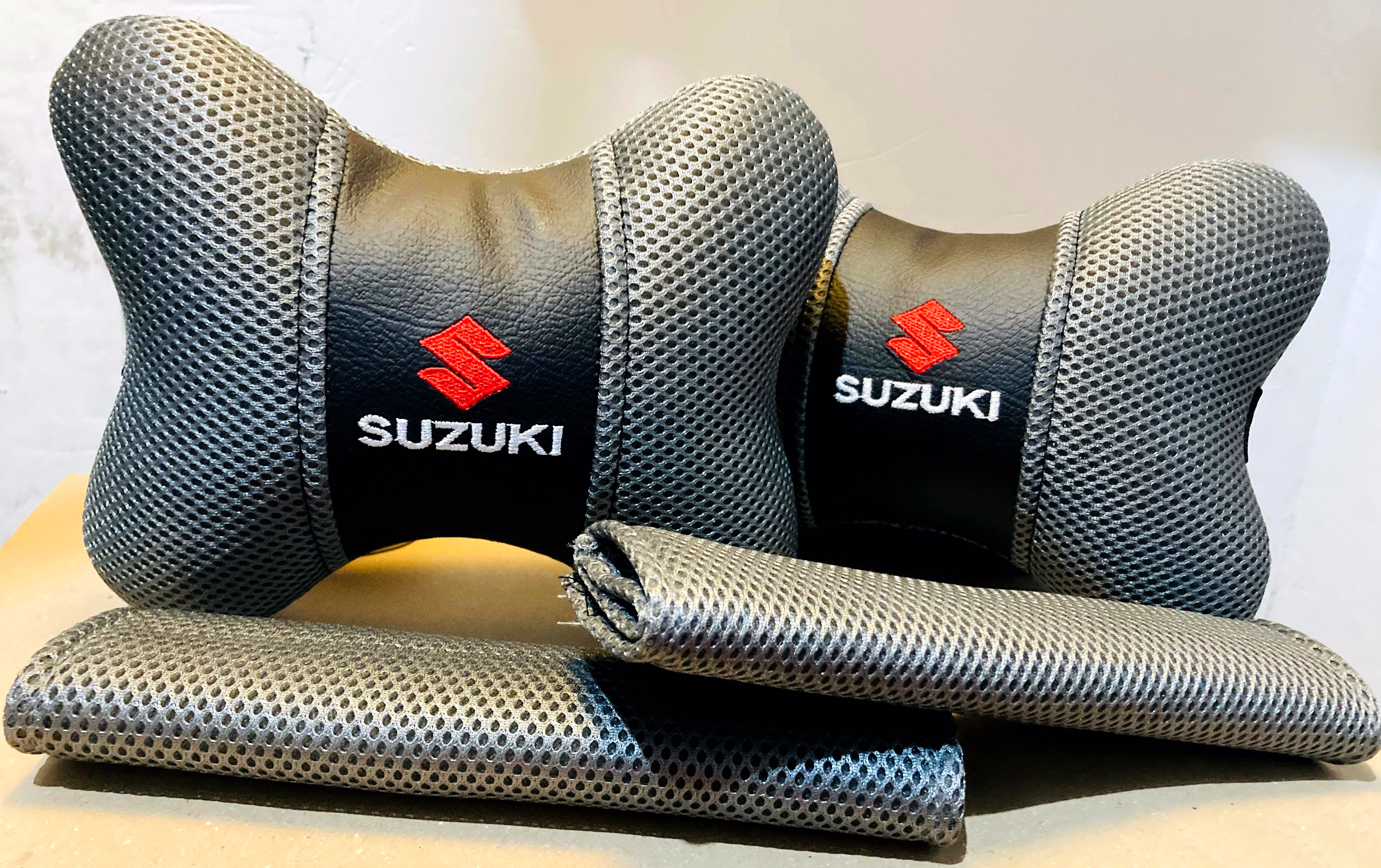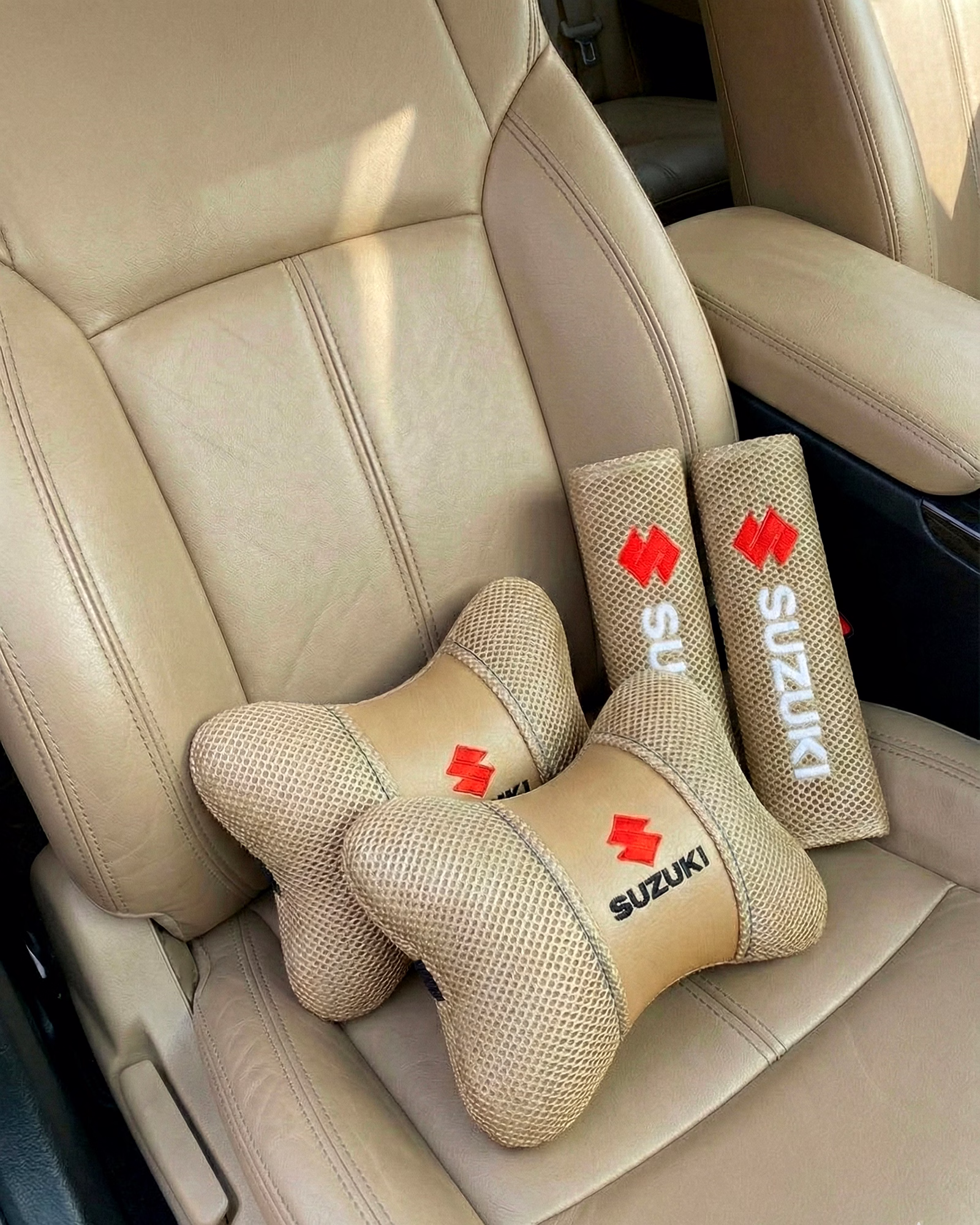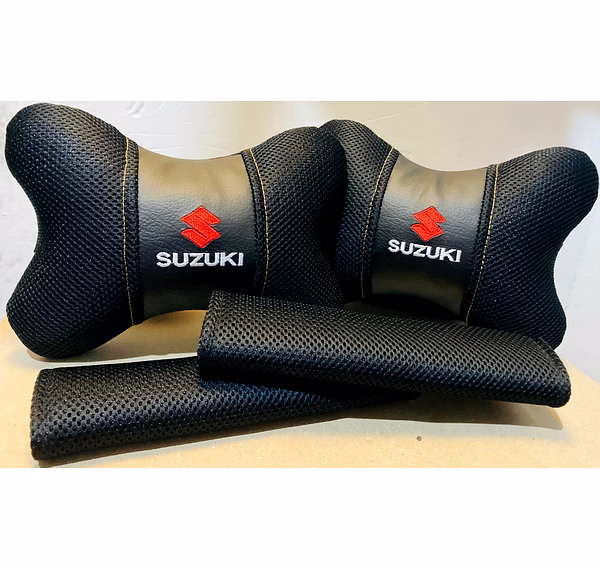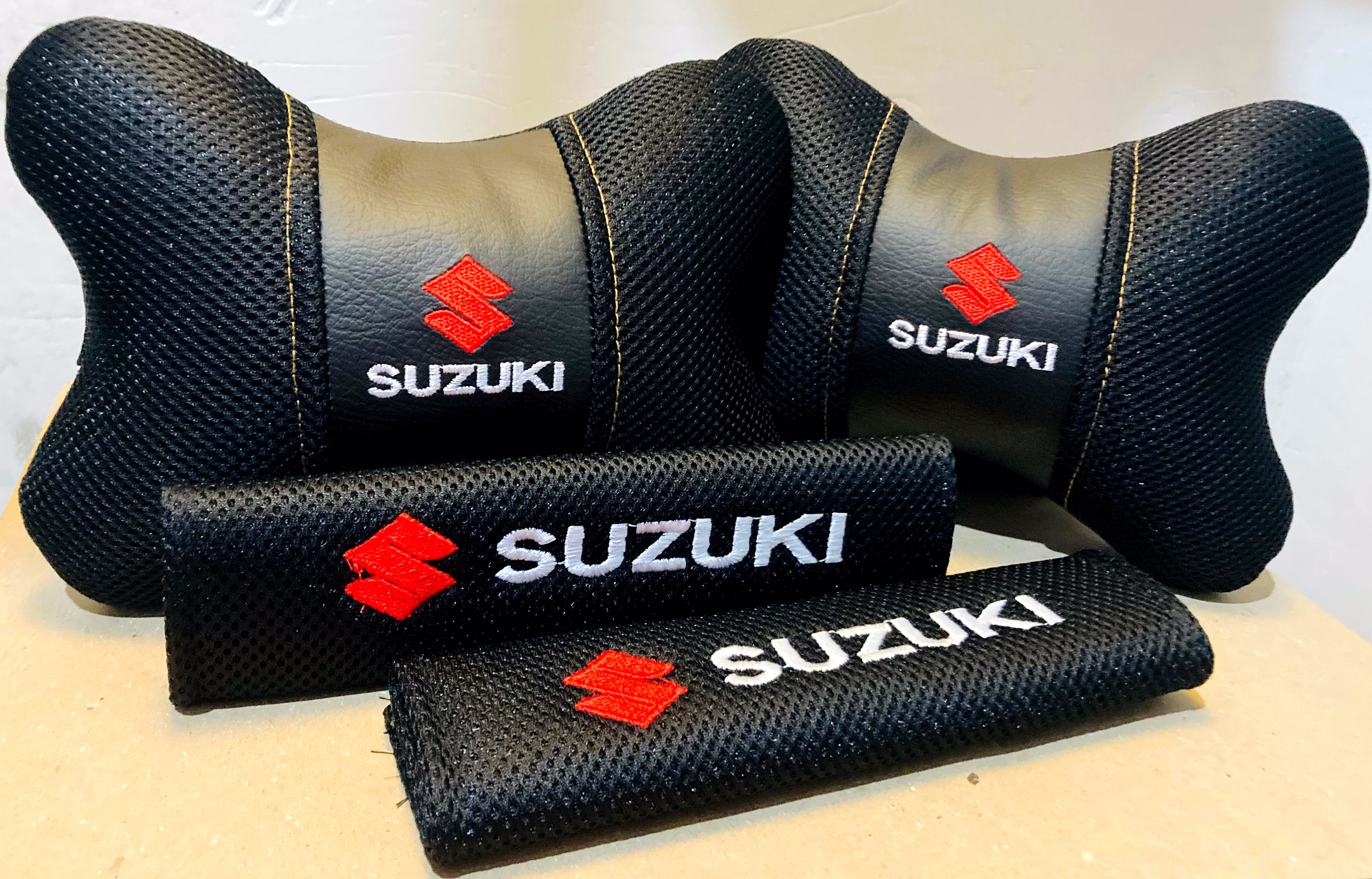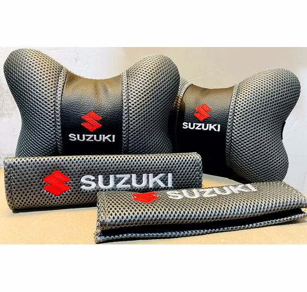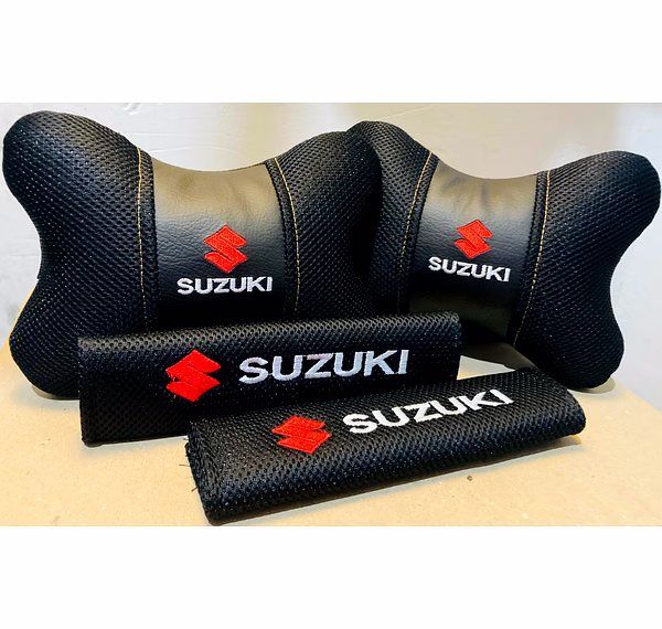 A set of 2 Suzuki branded Headrest Pillows with Seat Belt Covers