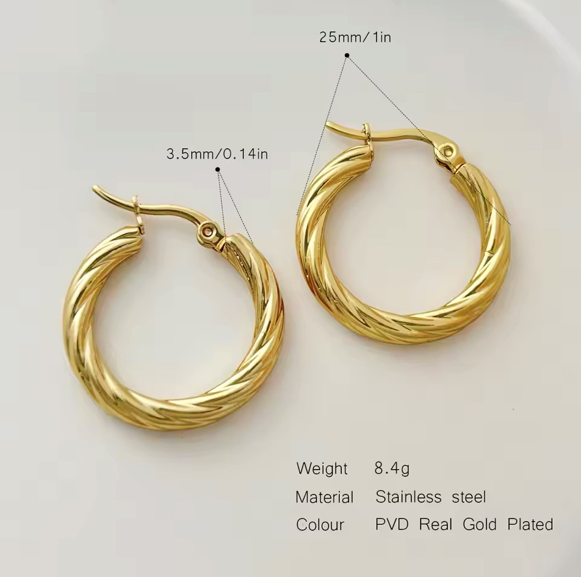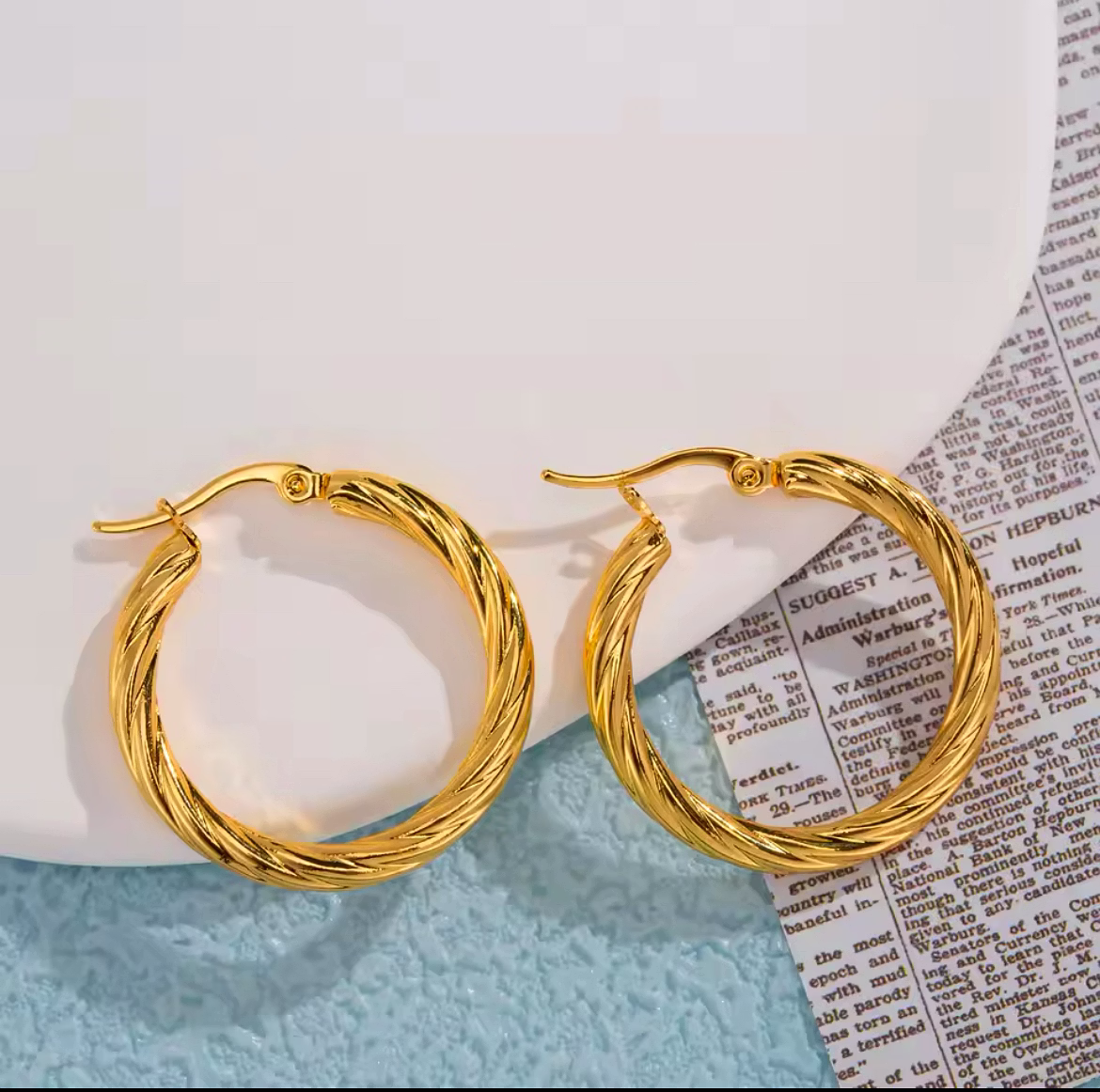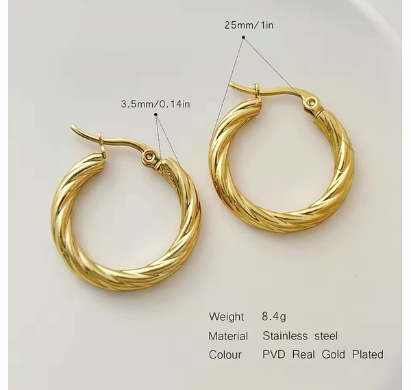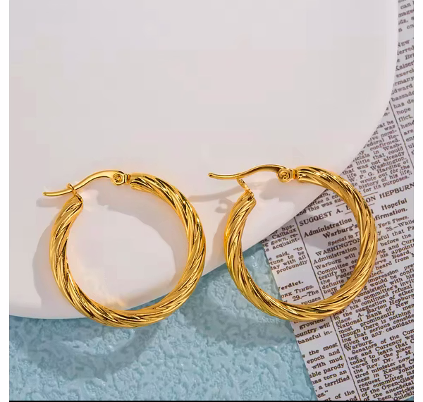 The Vintage Twisted Hoops bring timeless elegance and a touch of sophistication to your jewelry collection. With their intricate twisted design, these earrings effortlessly blend classic charm with a modern twist. The vintage-inspired style adds a refined, yet bold, statement to any look—whether you're dressing up for a special event or adding a chic accent to your daily ensemble. The durable, lightweight design ensures comfort, while the captivating texture catches the light, adding depth and dimension to your style. Perfect for those who appreciate the beauty of craftsmanship and the allure of vintage fashion, the Vintage Twisted Hoops are a must-have accessory for making a lasting impression.