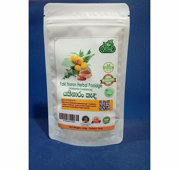 Yakinaran Herbal Porridge is a time tested Sri Lankan wellness drink prepared using dehydrated Yakinaran leaves blended with traditional medicinal rice. Carefully formulated according to indigenous healing practices, this porridge helps cleanse the body, strengthen immunity, and support healthy liver and respiratory function when taken regularly.